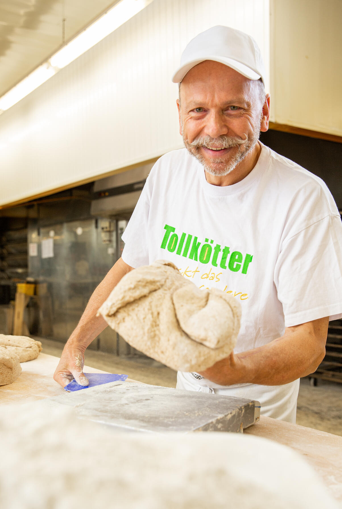 Warm ist es in der Backstube der Bäckerei Tollkötter, es riecht nach Teig, Getreide und frischen Plätzchen. „Das nimmt man irgendwann gar nicht mehr wahr!“, sagt Bäcker Friedrich Pigulla, der seit 20 Jahren für das münstersche Traditionsunternehmen Tollkötter backt. Inzwischen hat er auch die Backplanung in der Backstube von Tollkötter in Mecklenbeck übernommen, in der die Brote und Gebäcke für die fünf Filialen rund um den Prinzipalmarkt gebacken werden. Wie an einer Perlenkette aufgereiht ziehen sich die Tollkötter-Verkaufsstellen von der Rothenburg über den Prinzipalmarkt bis hin zum Roggenmarkt und der Bergstraße. 1905 von Theodor Tollkötter als Familienbetrieb gegründet, ist die Bäckerei heute ein mittelständisches Unternehmen mit über 60 Mitarbeitern, das sogar über Münsters Stadtgrenzen hinaus für seine mehr als 50 verschiedenen Brotsorten bekannt ist: Aus ganz Deutschland bestellen Partner und Privatkunden bei Tollkötter.