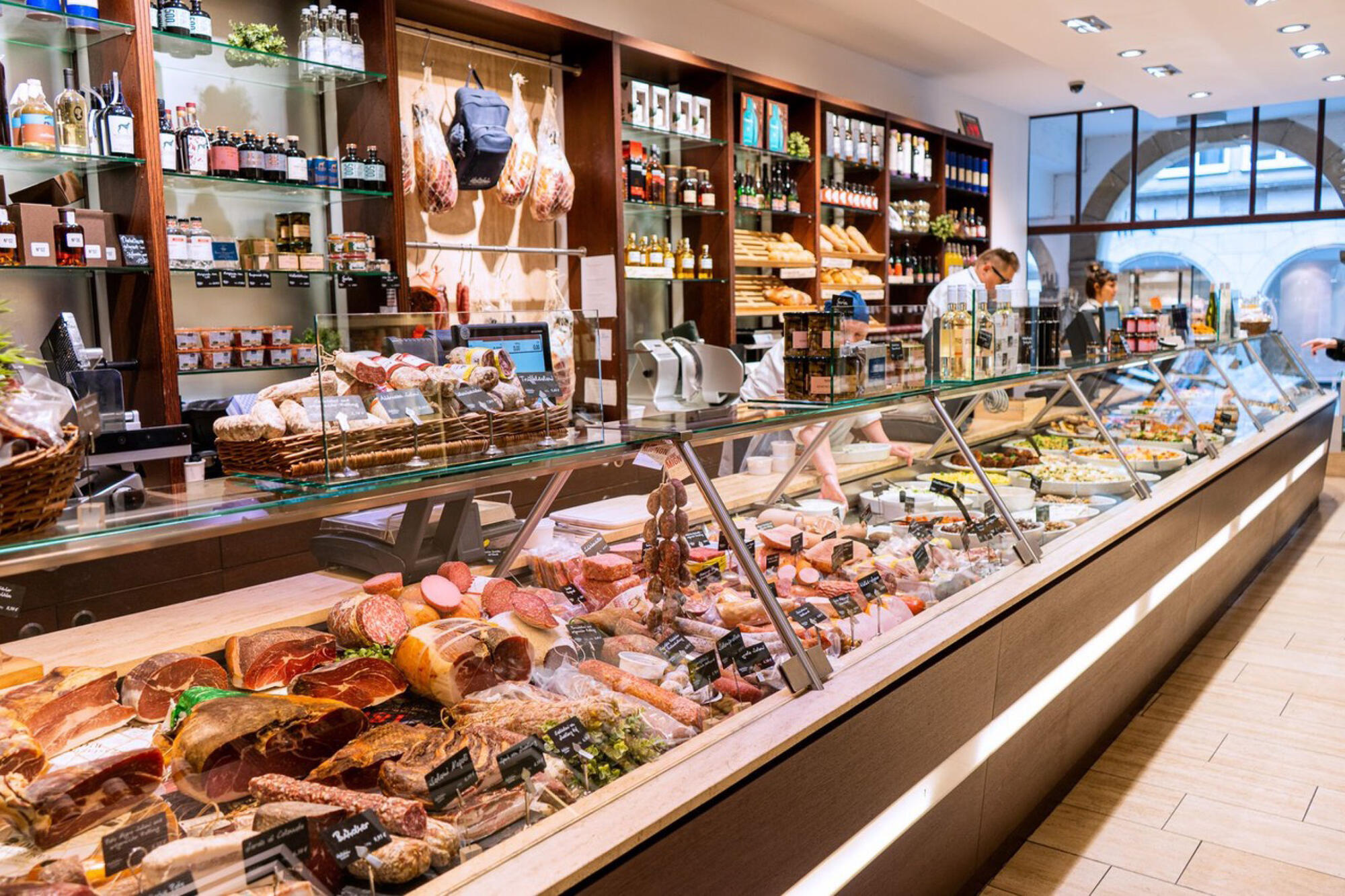 Die Zeit des Wirtschaftswunders ermöglichte es, in der kleinen, in den 1920er Jahren von Eugen Helmrich übernommenen Butterhandlung, das Sortiment weiter aufzufächern: Neben den reinen Produkten wurden kleine Gerichte angeboten. Noch heute gehören die damals ganz unaufgeregt entwickelten Familien-Rezepte wie der köstliche Kartoffelsalat oder die unvergleichlichen Buletten zum von Stammkunden geliebten Standardrepertoire der Delikatessenhandlung unter den Bögen im Kiepenkerlviertel. Diese „All-time-favourites“ der 18 Meter langen Delitheke haben ihre eingefleischten Fans – und apropos Fleisch: Das ist hier sowohl in Form von Wurst, als auch in jeder anderen Variante der Weiterverarbeitung ein liebevoll ausgewähltes Gut.